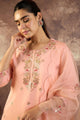 Peach-coloured embroidered Kurta with Trousers with dupatta