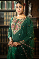 Green, Beige & Pink embroidered kurta, trousers with dupatta