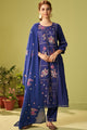 Blue embroidered Kurta with Trousers with dupatta