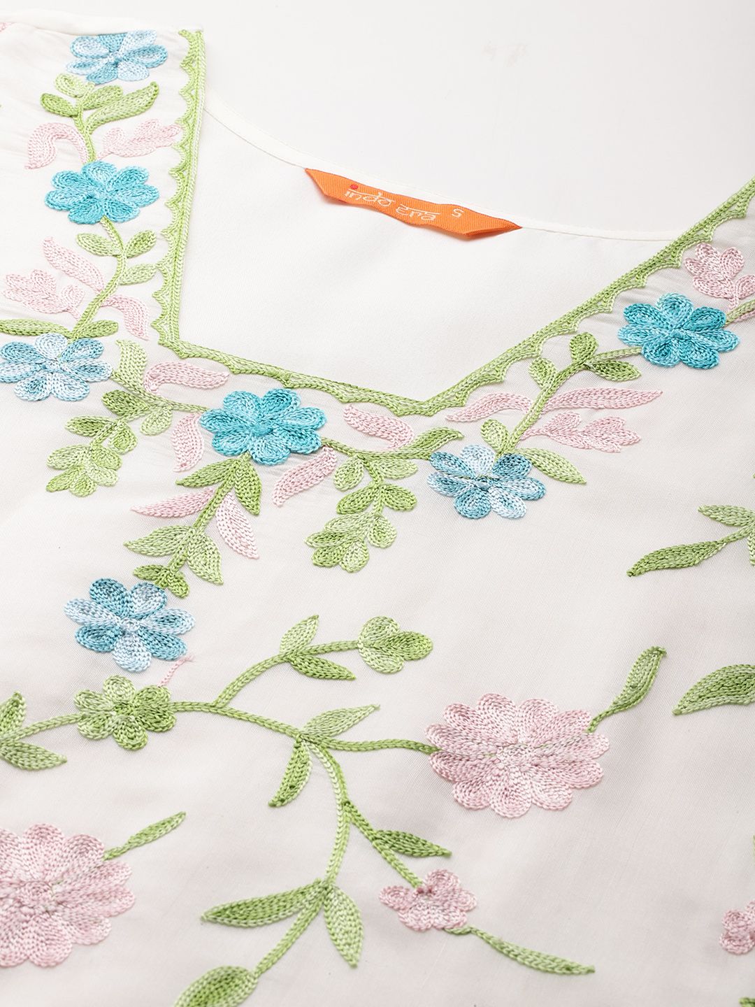 Dhiyona IE Women Floral Embroidered Thread Work Kurta With Trousers & Dupatta