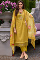 Yellow and pink floral embroidered kurta with trousers with dupatta