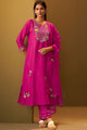 Magenta embroidered Kurta with Trousers with dupatta