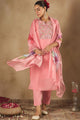 Peach-coloured embroidered Kurta with Trousers with dupatta