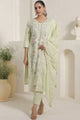 Dhiyona IE Women Floral Embroidered Thread Work Pure Cotton Kurta with Trousers & Dupatta