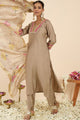 Dhiyona IE Women Floral Panelled Thread Work Raw Silk Kurta with Trousers & With Dupatta