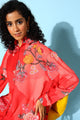 Red & white floral printed shirt, has shirt collar, long sleeves & full-button placket