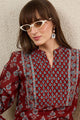 Floral - Printed - Maroon Kurta