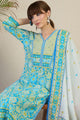 Blue, Green, White Printed Kurta with Trousers & Dupatta