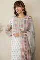 White, Green, Red Printed Kurta with Trousers & Dupatta