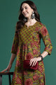 Olive green printed Kurta with Trousers