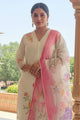 Off White, Pink, Purple Printed Kurta with Trousers & Dupatta