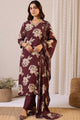 Burgundy & Beige Printed Kurta with Trousers & Dupatta