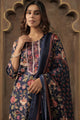 Navy Blue, Blue, Red Printed Kurta with Trousers & Dupatta