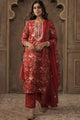 Red, Gold, Green Printed Kurta with Trousers & Dupatta