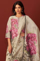 Beige, Pink, Green Printed Kurta with Trousers & Dupatta
