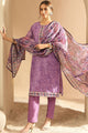 Purple printed Kurta with Trousers with dupatta