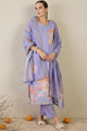 Lavender & Peach Printed Kurta with Trousers & Dupatta