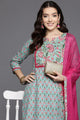Sea green printed Kurta with Trousers with dupatta