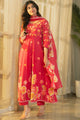 Red printed Kurta with Trousers with dupatta