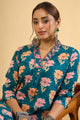 Dhiyona IE Women Floral Printed Pleated Mirror Work Pure Cotton Kurta & Trousers
