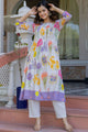 Dhiyona IE Women Floral Printed Pleated Pure Cotton Kurta with Trousers