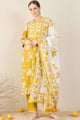 Dhiyona IE Women Floral Printed Pure Cotton Kurta with Trousers & Dupatta