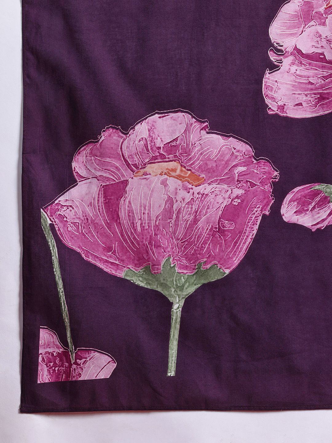 Dhiyona IE Women Floral Printed Pure Cotton Kurta with Trousers & With Dupatta
