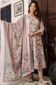 Dhiyona IE Women Floral Printed Regular Beads and Stones Pure Cotton Kurta with Trousers & With Dupatta