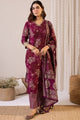 Dhiyona IE Women Floral Printed Regular Chanderi Silk Kurta with Trousers & With Dupatta