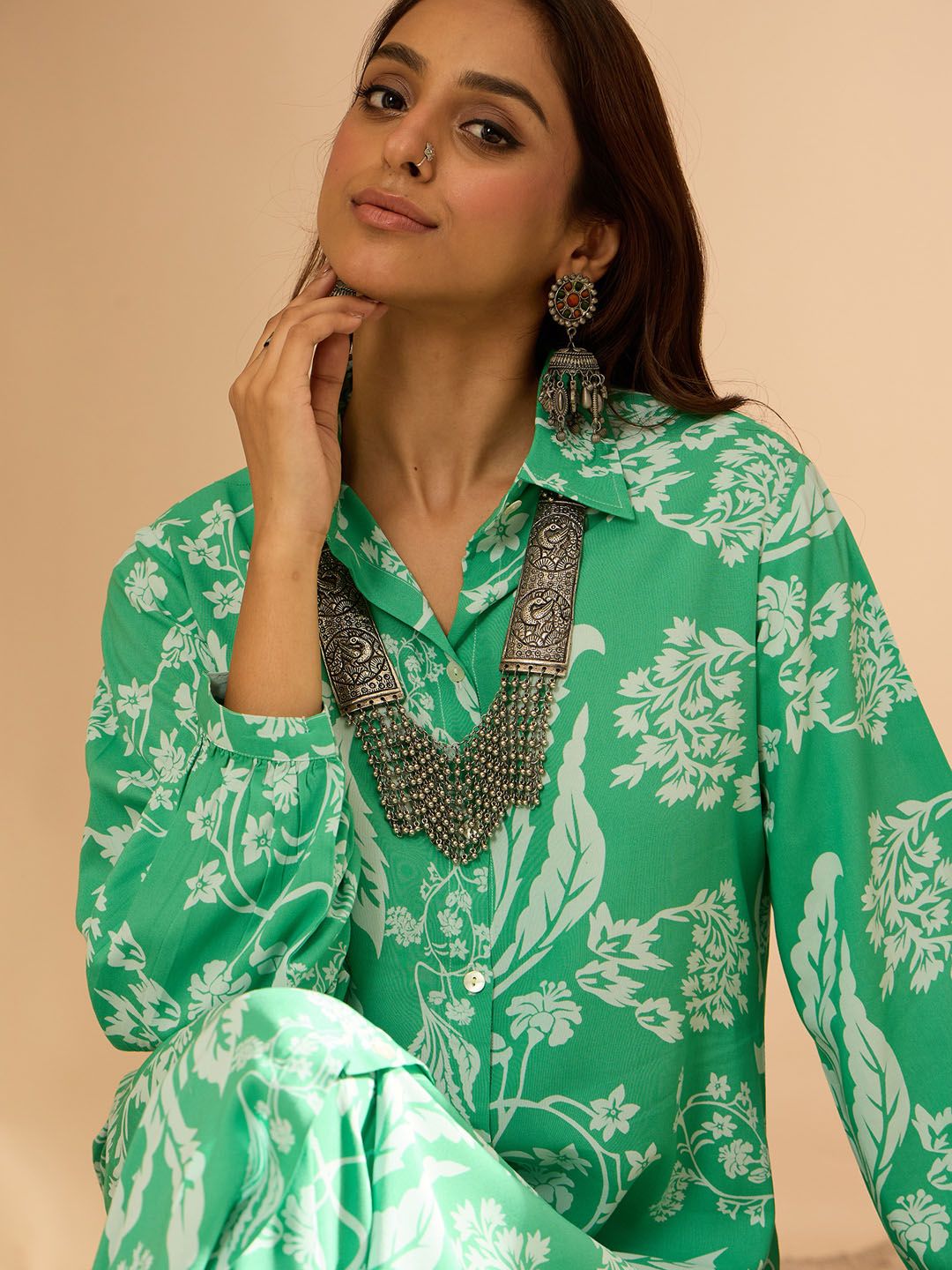Green printed Kurta with Trousers