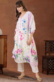 Dhiyona IE Women Floral Printed Regular Linen Kurta with Trousers
