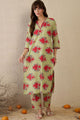 Dhiyona IE Women Floral Printed Regular Mirror Work Pure Cotton Kurta with Trousers