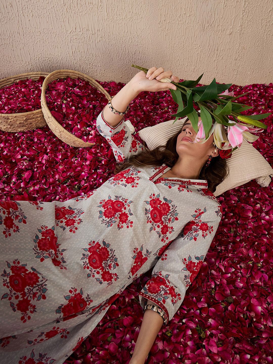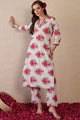 Dhiyona IE Women Floral Printed Regular Mirror Work Pure Cotton Kurta with Trousers