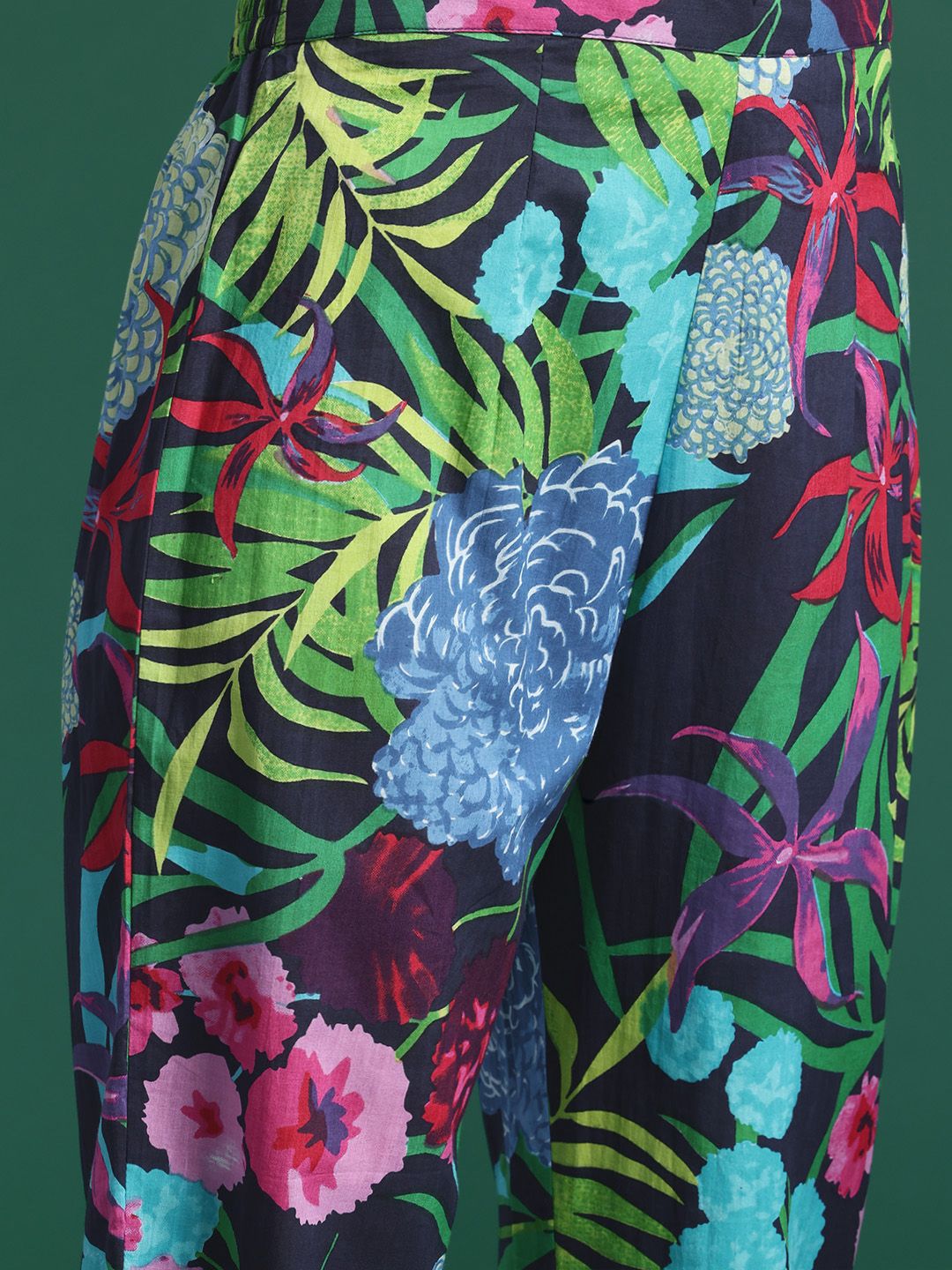 Dhiyona IE Women Floral Printed Regular Pure Cotton Kurta with Trousers