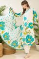 White printed Kurta with Trousers with dupatta