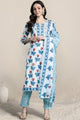 Dhiyona IE Women Floral Printed Regular Pure Cotton Kurta with Trousers & With Dupatta