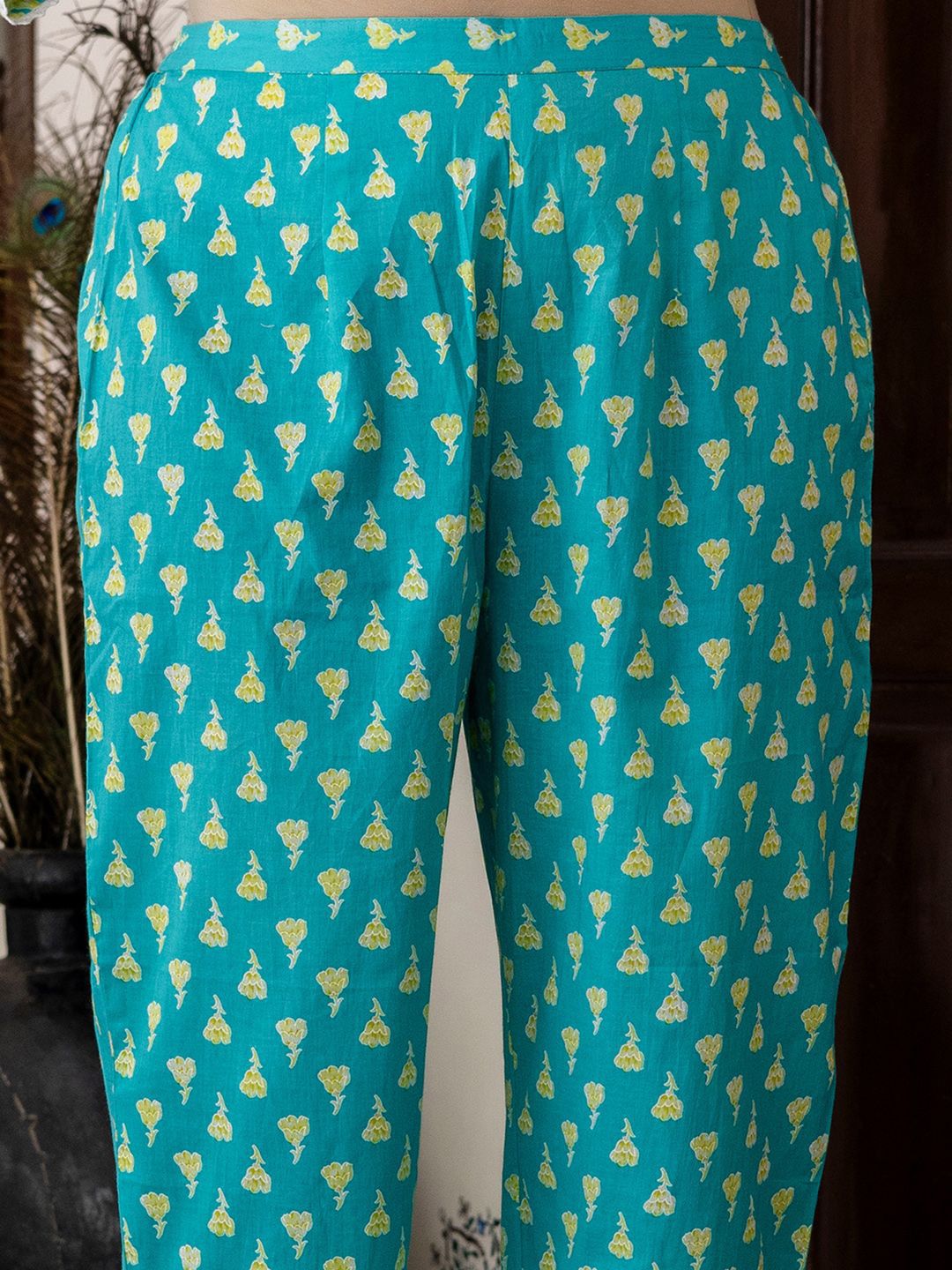 Dhiyona IE Women Floral Printed Regular Pure Cotton Kurta with Trousers & With Dupatta