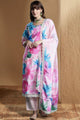 Pink printed Kurta with Trousers with dupatta