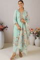 Dhiyona IE Women Floral Printed Regular Thread Work Linen Kurta with Trousers & With Dupatta