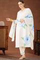 Dhiyona IE Women Floral Printed Regular Thread Work Linen Kurta with Trousers & With Dupatta
