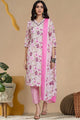Dhiyona IE Women Floral Printed Regular Thread Work Pure Cotton Kurta with Trousers & With Dupatta