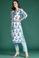 Dhiyona IE Women Floral Printed Regular Thread Work Pure Cotton Kurta with Trousers & With Dupatta