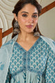 Dhiyona IE Women Floral Printed Tiered Pure Cotton Kurta with Trousers & With Dupatta