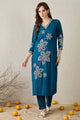 Women Floral V-Neck Embroidered Regular Thread Work Straight Kurta Sets