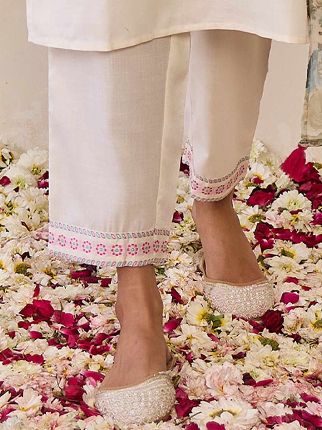 Dhiyona IE Women Floral Yoke Design Regular Thread Work Pure Cotton Kurta with Trousers & With Dupatta
