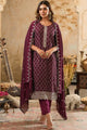 Purple & Beige Embroidered Kurta with Trousers & Dupatta
