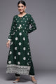Dhiyona IE Women Green Ethnic Motifs Embroidered Kurta with Trousers