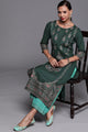 Dhiyona IE Women Green Ethnic Motifs Foil Printed Straight Kurta With Palazzo Set