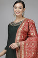 Dhiyona IE Women Green Ethnic Motifs Regular Liva Kurta with Trousers & Dupatta