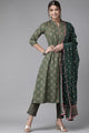 Dhiyona IE Women Green Printed Regular Kurta with Trousers & Dupatta